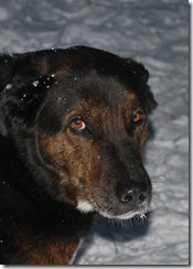 Buddy is our farm dog. His job is to keep any stray dogs off the farm and away from the sheep. He supervises chores and keeps us in line.